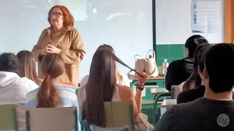 Marimar Blanco, comparte su testimonio con alumnos de Bachillerato del IES, Francisco de Quevedo, de Villanueva de los Infantes, en Ciudad Real.