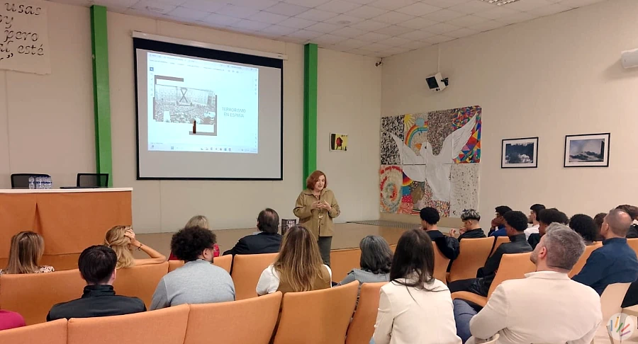 El pasado 5 de abril, un grupo de doce personas menores atendidas en el centro educativo ‘Virgen de Valvanera’ de Logroño, dependiente de la Consejería de Servicios Sociales y Gobernanza Pública del Gobierno de La Rioja y gestionado por Fundación Diagrama, participaron en una charla impartida por Cristina Cuesta, directora de la Fundación Miguel Ángel Blanco. Esta actividad, que ya se llevó a cabo en el centro en 2019, forma parte del programa ‘Educando para la libertad’ del Ministerio de Interior, dirigido a población joven que cumple medidas de internamiento y reinserción social.