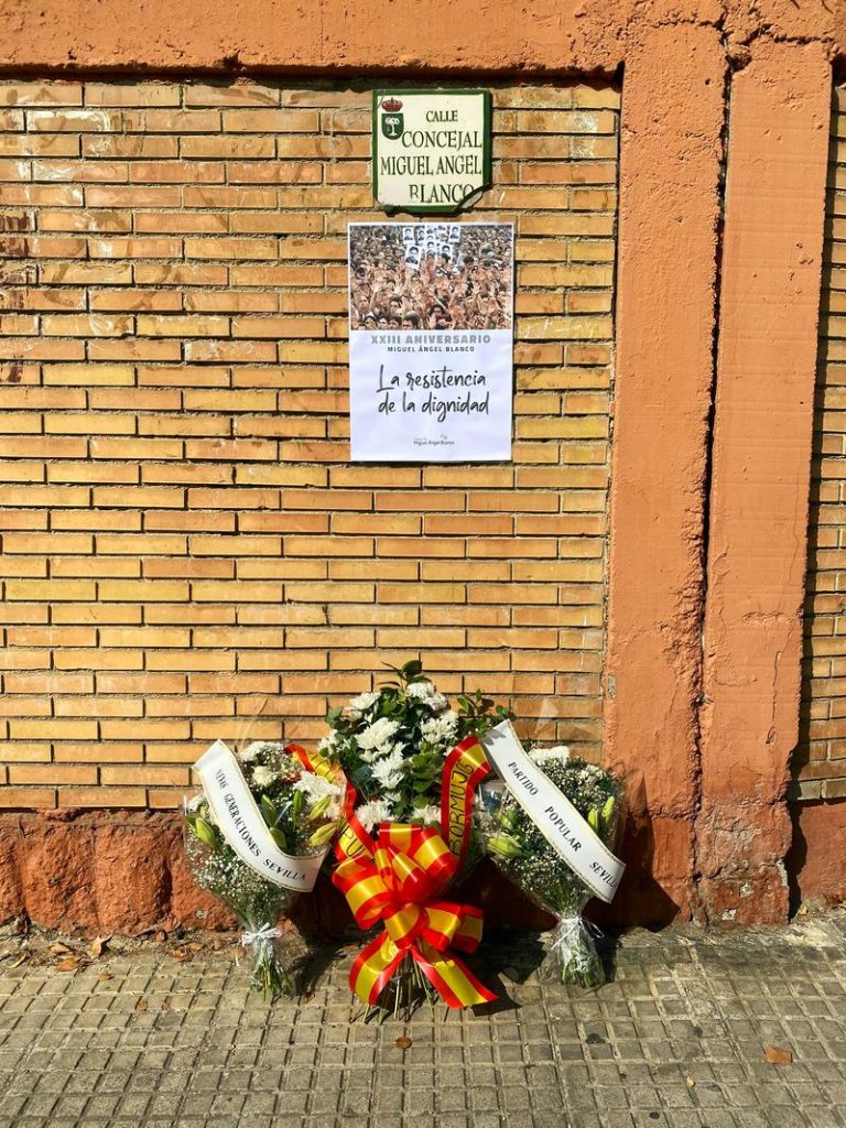 En Castilleja de la Cuesta hemos homenajeado a Miguel Ángel Blanco, concejal vasco de Ermua secuestrado y asesinado por ETA. Gracias a los amigos de @Aapsp2018 por mantener viva la memoria de quien defendió a España con la palabra, frente a los tiros en la nuca y las bombas.