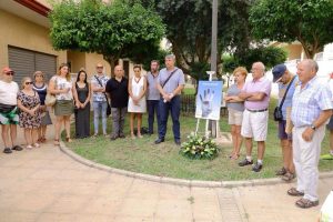 En el paseo que lleva el nombre de Miguel Ángel Blanco esta pedanía de Alicante ha colocado un cartel y un ramo de flores en su Memoria.