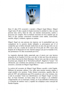 Hace 21 años ETA secuestró y asesinó a Miguel Ángel Blanco. Miguel Ángel tenía 29 años cuando la banda terrorista le arrebató la vida; era una persona muy activa, llena de vida, con muchas motivaciones, sueños y proyectos por...