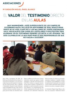 LA REVISTA DE LA FVT DE DICIEMBRE RECOGE UN ARTÍCULO DE NUESTRA FUNDACIÓN SOBRE EL VALOR DEL TESTIMONIO DIRECTO DE LAS VÍCTIMAS EN LAS AULAS