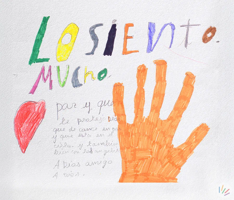 Proliferan los dibujos, a veces dentro de las cartas y, otras, en folios aparte, que también pueden verse en la exposición digital. En ellos, todo el imaginario visual de aquellos años de fin de siglo, empezando por las manos blancas, que se habían popularizado el año anterior a raíz de otro asesinato, el de Francisco Tomás y Valiente, ex presidente del Tribunal Constitucional, cuando llegaba a la Facultad de Derecho de la Universidad Autónoma de Madrid para dar clase.
